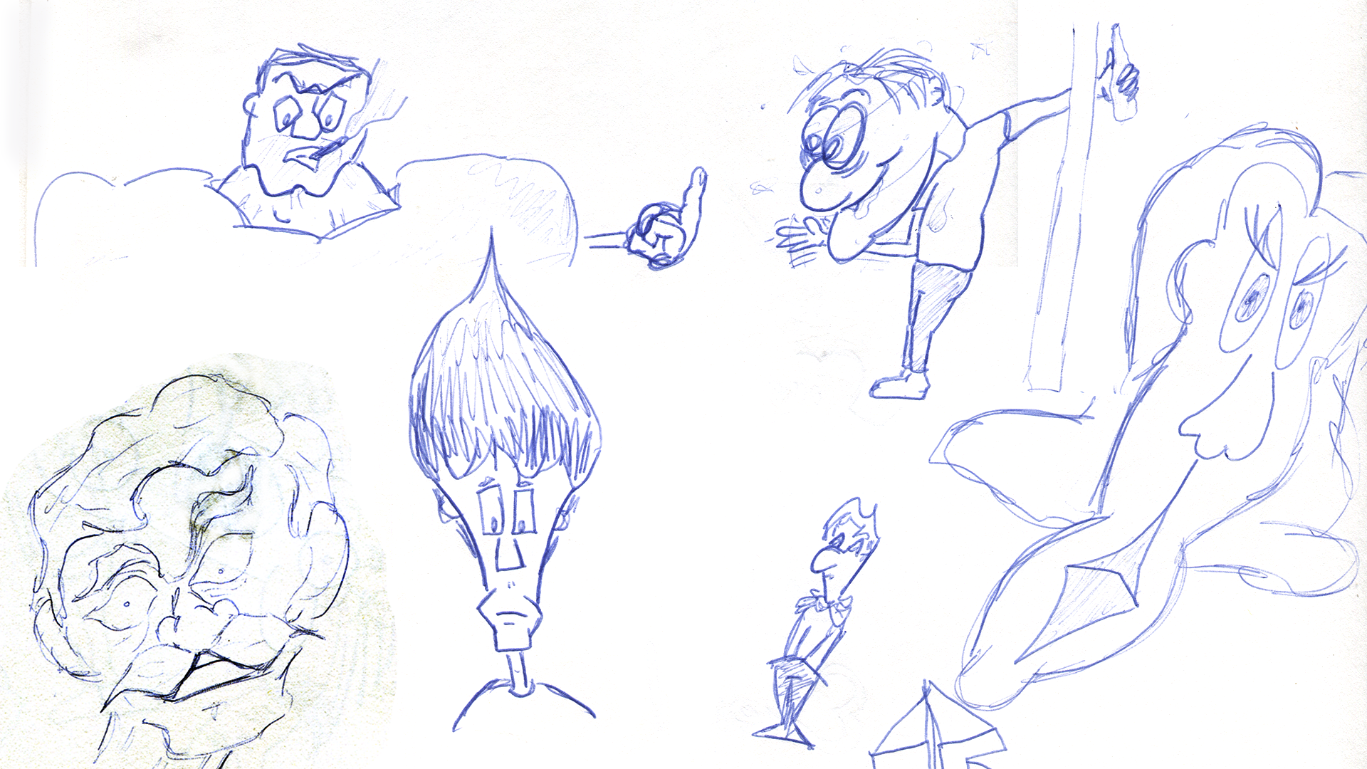 bow tie cigar drunk guy hands in pockets old timey guy paintbrush head stern woman the finger tough guy
