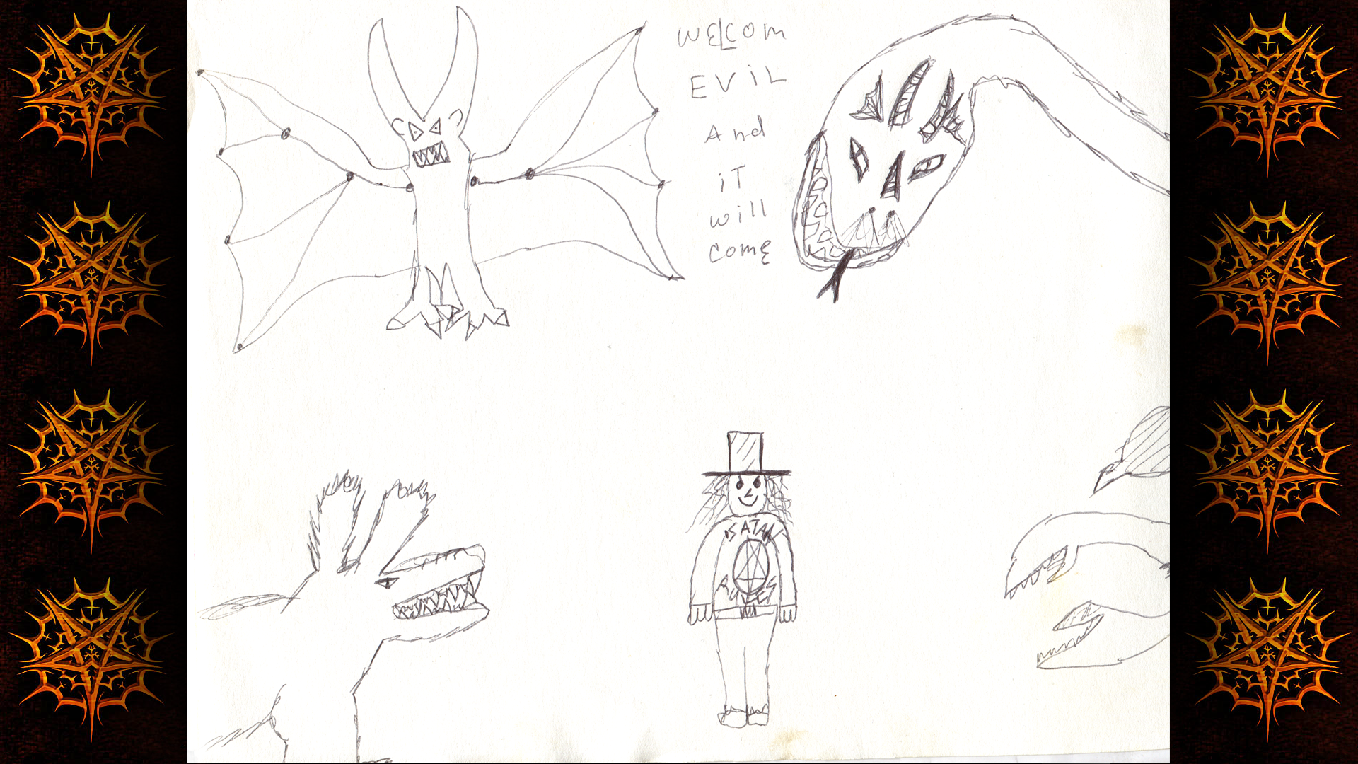 bat dog bear thing dragon monster claws satan rules welcom evil and it will come