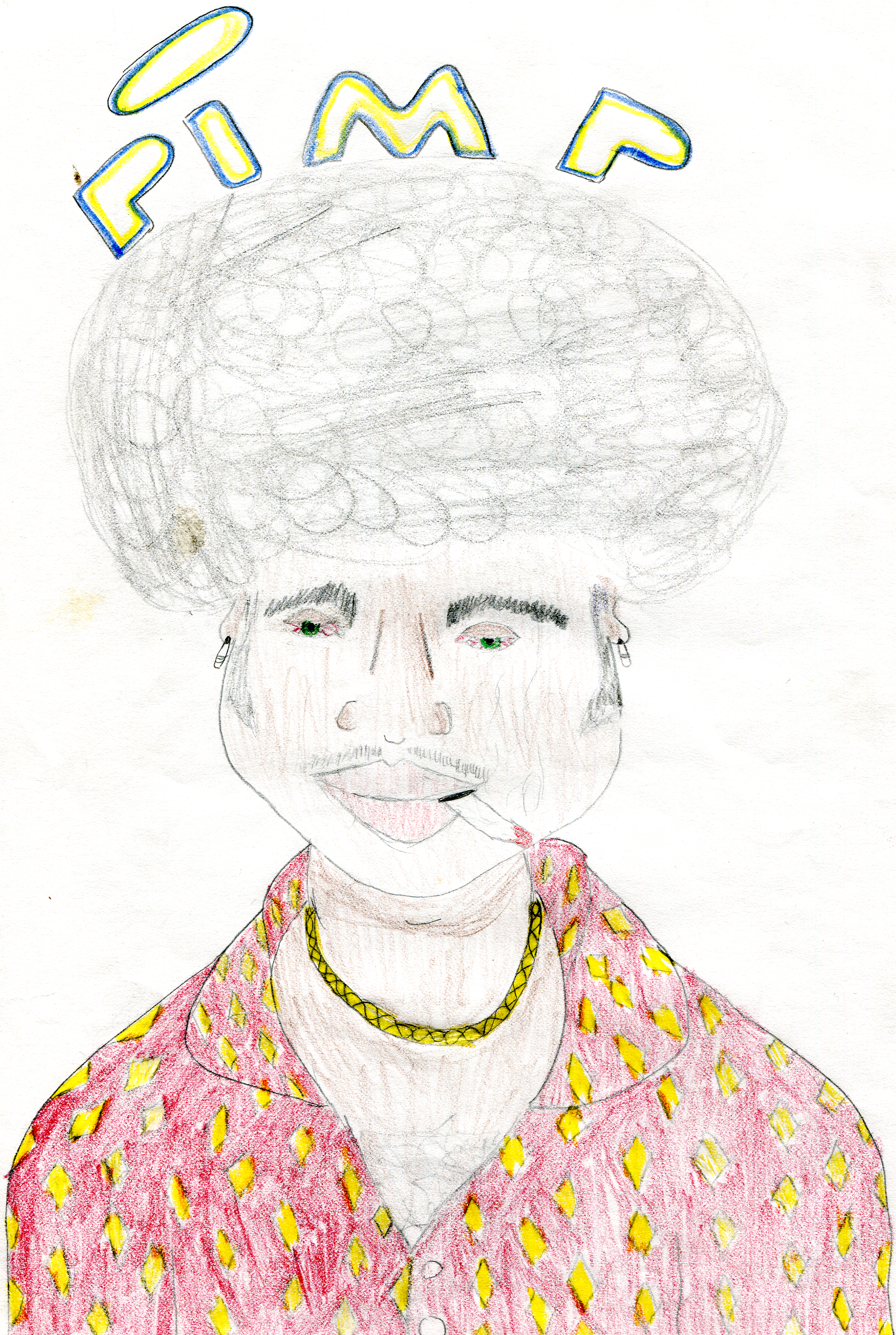 cigarettte dirt stache dope shirt gold chain pimp